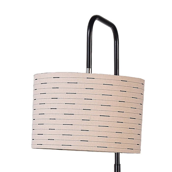 - The lamp is built from a combination of metal, engineered wood, and a woven fabric shade—materials chosen for both longevity and comfort. The metal frame provides a stable structure without adding unnecessary bulk, while the wooden shelves introduce a natural texture that softens the overall silhouette. The fabric shade filters the light into a warm, even glow, making the lamp a pleasant companion for evenings at home.